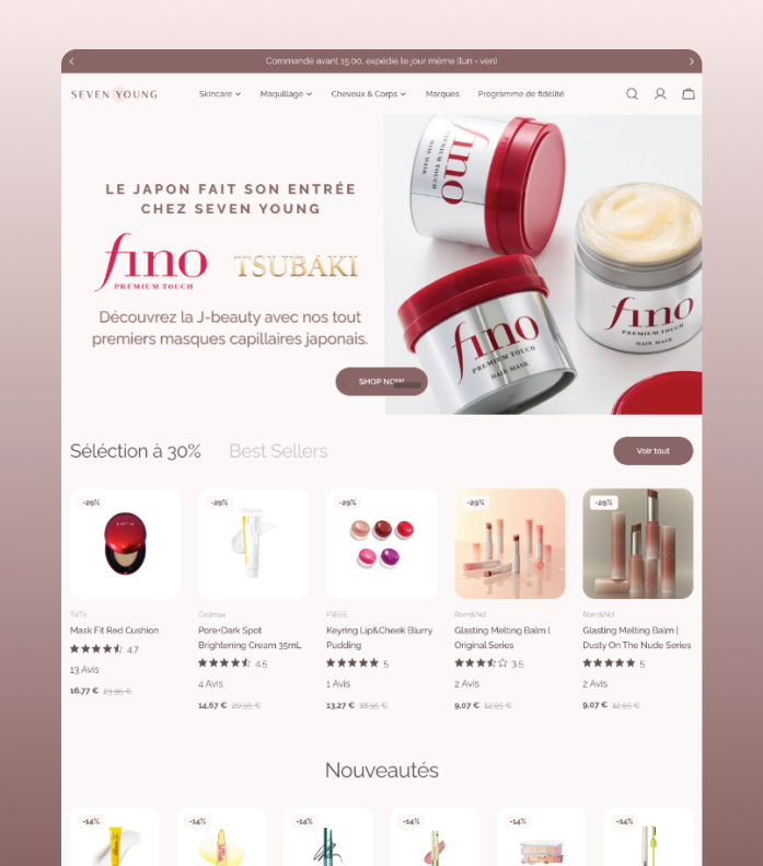 Accompagnement stratégique, création du parcours client et activation des bons leviers pour transformer la boutique Seven Young en un canal de croissance scalable.